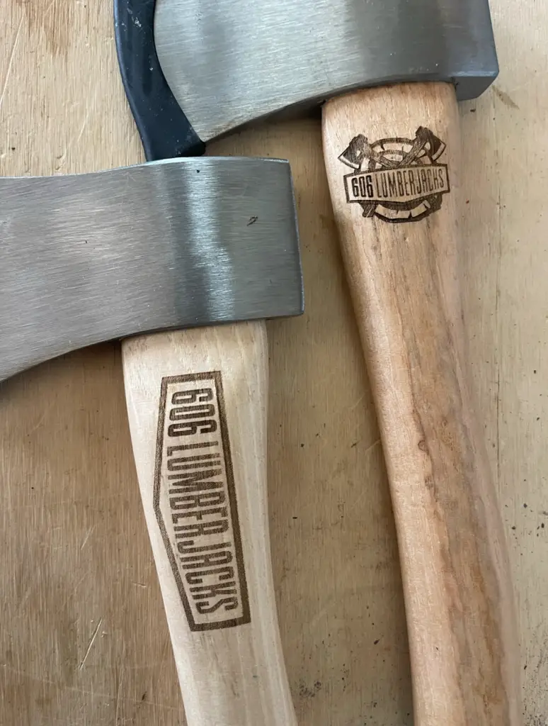 We then take your Logo and engrave it into the wood handle. Giving your Axes the Brand recognition they deserve. Unleash the power of precision and radiance with our superior axes—your perfect throwing companion awaits!